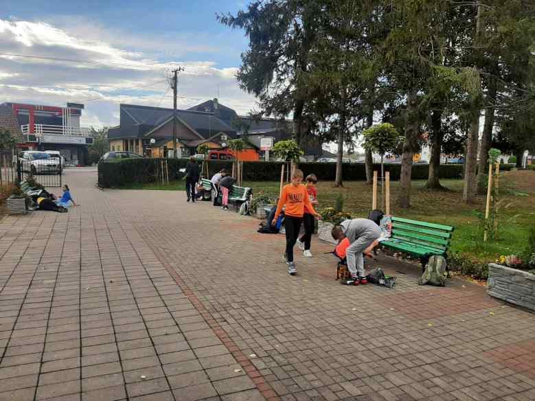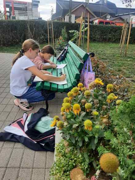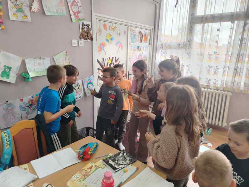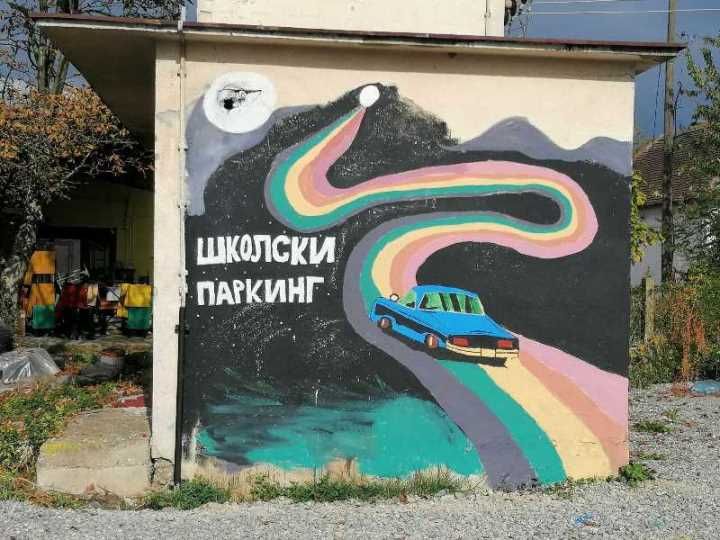Исцртавање и улепшавање зида на школском паркингу радиле су ученице осмог разреда заједно са наставницом Горданом Станковић.