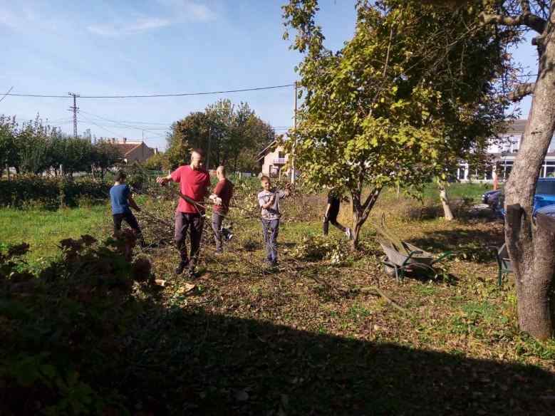 У оквиру часа Моја животна средина ученици осмог разреда су 13.10.2023. године са наставником Мирославом Глигорићем, учествовали у сређивању школског дворишта. Браво! За сваку похвалу!
